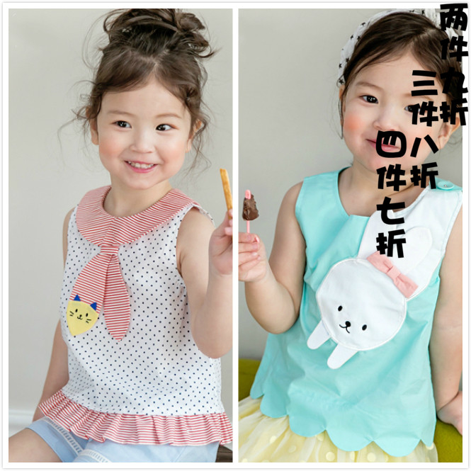 bebezoo女童T恤无袖纯棉上衣卡通透气薄款宝宝夏装衣服韩版套头衫热门设计联盟服务商