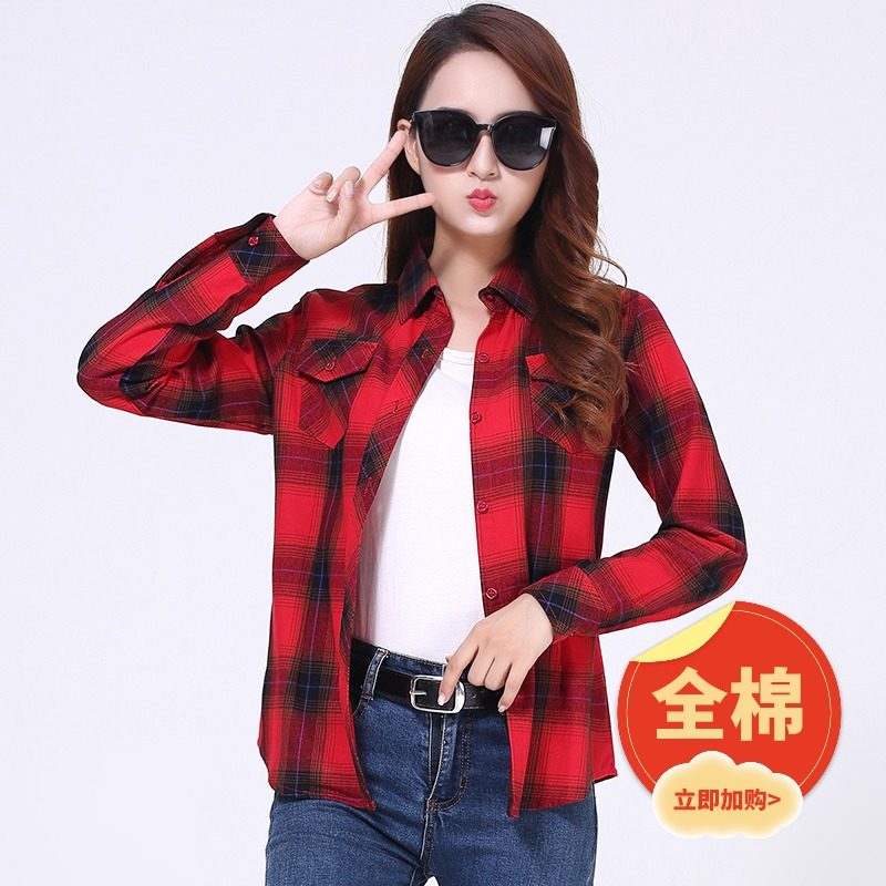 纯棉格子保暖衬衫女长袖加绒加厚秋冬新款学生打底衫大码女装外套