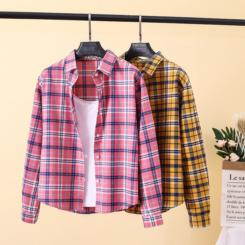 格子衬衫女宽松长袖磨毛新款百搭休闲学生春秋大码韩版衬衣外套棉